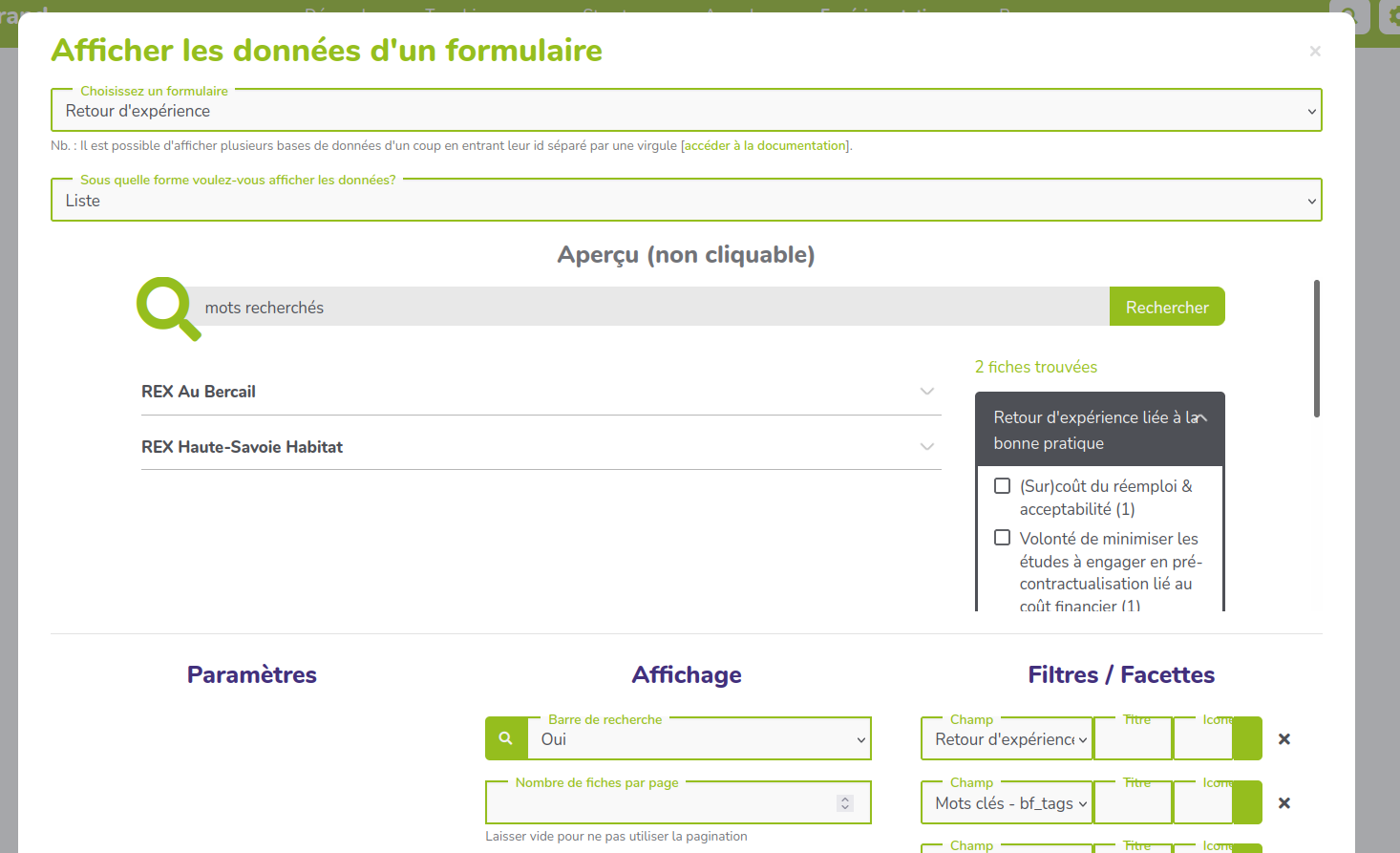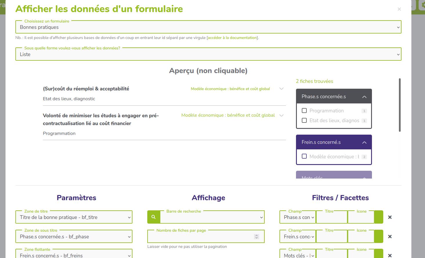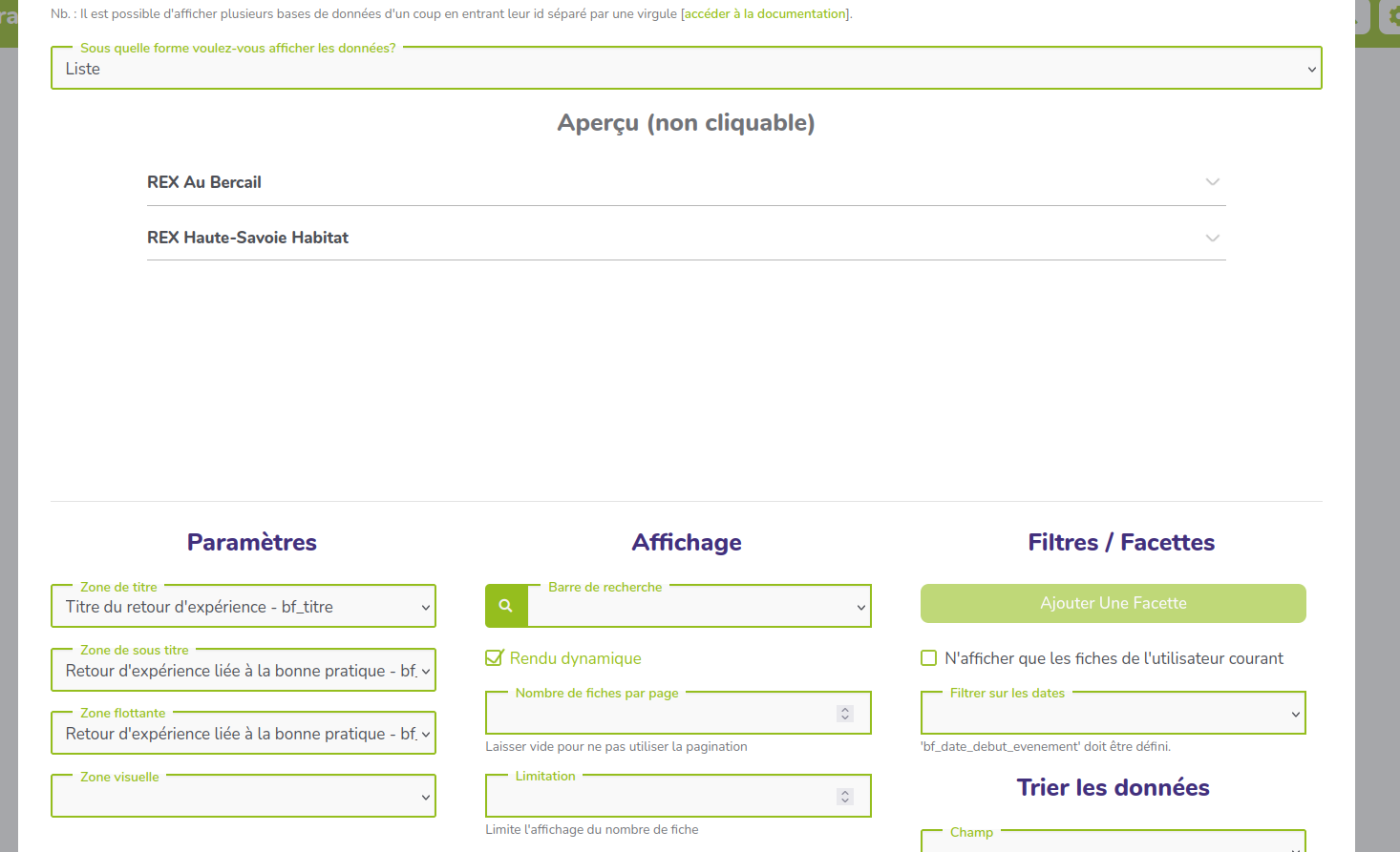 Je ne comprends pas pourquoi, parfois, lors d’un affichage de fiche Bazar en mode « liste » les paramètres permettant d’afficher un sous-titre, une zone flottante etc. n’apparaissent pas.