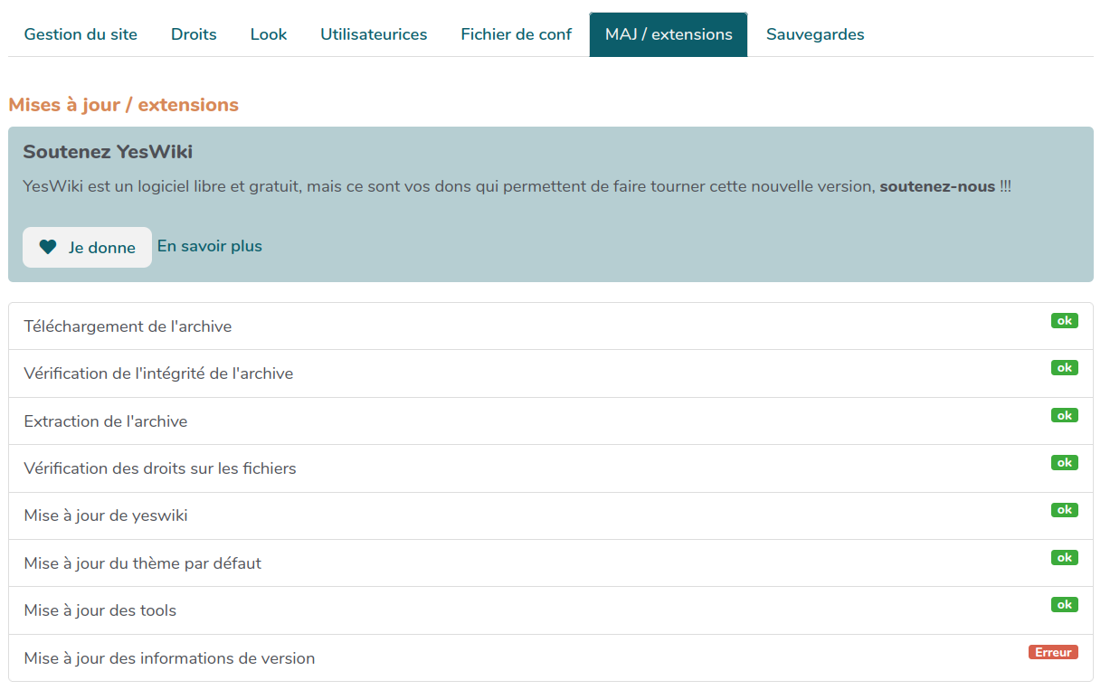 Sur ce wiki https://www.yeswiki.habitat-eco-action.fr j’ai une difficulté de mise à jour. Voici les captures d’écran :