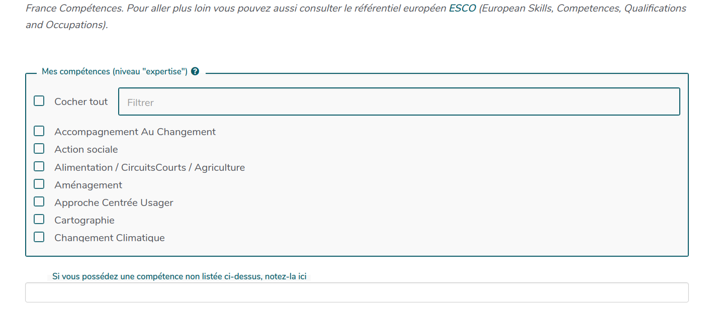 On a mis en place un yeswiki avec un formulaire d’inscription assez complexe qui fait appel à des listes bazar pour préciser des compétences :