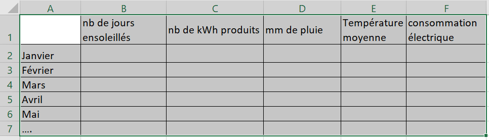 La seule option possible serait que le formulaire contienne les infos mois / nb de jours ensoleilles / nb de kWh produits / …